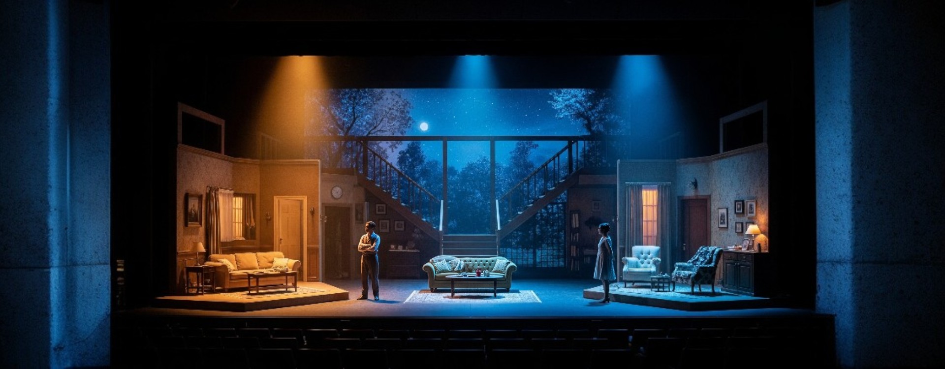 La superposition de plans lumineux est une technique d’éclairage scénique qui consiste à illuminer simultanément plusieurs espaces ou niveaux sur scène, en utilisant des intensités, couleurs et directions distinctes. Cette méthode permet au spectateur de percevoir plusieurs strates narratives en un même instant, facilitant ainsi la lecture de scènes parallèles, de souvenirs ou de rêves. Sur le plan dramaturgique, elle offre la possibilité de confronter différentes temporalités, ambiances ou émotions sur un seul plateau, enrichissant la complexité et la richesse du récit. Pour réussir cette superposition, l’éclairage s’appuie sur des zones lumineuses clairement délimitées, des contrastes de teintes et d’intensités, ainsi que sur l’usage de filtres et gobos pour différencier visuellement chaque espace. Par exemple, un salon familial éclairé en lumière chaude et tamisée à l’avant-scène peut coexister avec un couloir en arrière-plan, baigné d’une lumière froide et vive, où se déroule une action parallèle ou un flashback. Cette technique permet ainsi de multiplier les niveaux de lecture tout en conservant une clarté visuelle essentielle, offrant une expérience scénique à la fois riche et fluide.