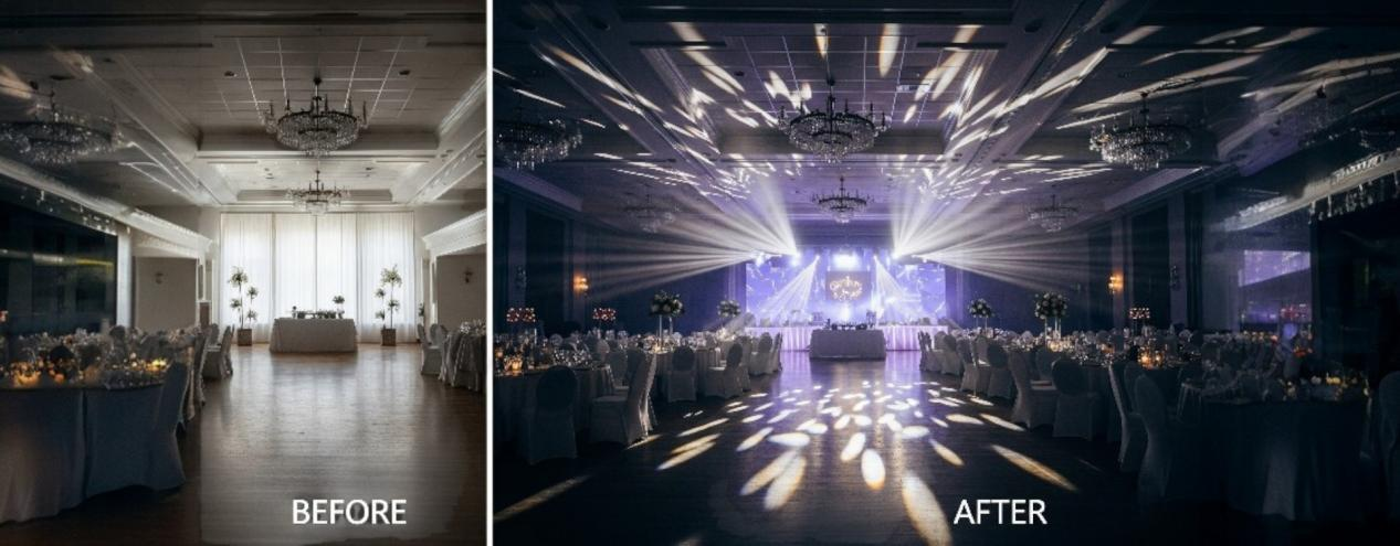Perte d’effet décoratif : Dans les événements où l’éclairage met en valeur la décoration, le mobilier ou les éléments architecturaux, un mauvais angle de lumière peut effacer les textures ou les détails clés.