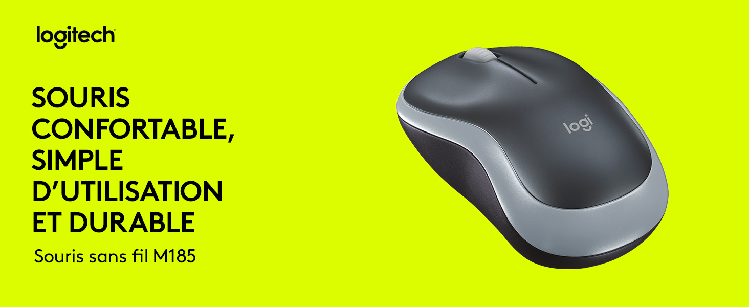 Logitech M185 Souris Sans Fil La souris sans fil M185 de Logitech est prête quand vous l'êtes. Une souris simple et pratique avec plug-and-play sans fil. La fiabilité du filaire avec la liberté du sans fil. Transmission rapide de donnés et aucun délais ou interférences. La M185 fonctionne directement sans logiciel et le récepteur nano USB est assez petit pour rester dans votre port USB pour que vous ne le perdiez pas. La pile d'une durée d'1 an signifie moins de tracas (2). Restez productif plus longtemps avec la forme confortable et incurvée qui suit la forme naturelle de votre main et est aussi confortable pour les droitiers ou gauchers. La souris sans fil compacte rentre facilement avec votre ordinateur portable dans un sac pour que vous l'emportiez partout. Détails Produits : Dimensions : 99 x 60 x 39 mm Poids (avec piles) : 75,2g Portée de la connexion sans fil: Environ 10 m Technologie de capteur: Technologie avancée de suivi optique Résolution du capteur: 1 000 Roulette de défilement : 2D, optical Nombre de boutons : 3 (clic Gauche/Droite, clic Milieu) Compatible avec Windows 7,8, 10 ou plus récent, macOS 10.5 ou plus récent, Chrome OS, Linux Kernel 2.6+ (1) D'après des données de ventes (en unités) indépendantes recueillies pour les bureaux sans fil sur les principaux marchés mondiaux, y compris le Canada, la Chine, la France, l’Allemagne, l’Indonésie, la République de Corée, la Fédération de Russie, la Suède, Taiwan, la Turquie, le Royaume-Uni et les États-Unis (sur la période de juillet 2019 à juillet 2020). Canal de vente au détail uniquement. (2) La longévité des piles est susceptible de varier en fonction de l'environnement et du mode d'utilisation. (3) Basé sur le calcul du débit en bits/seconde associant les valeurs moyennes de vitesse et de précision pour tous les dispositifs participant à l'étude. Étude Logitech Ergonomic Lab avec 23 participants (oct 2019) avec quatre souris standard Logitech et deux pavés tactiles intégrés standard (4) Basé sur le calcul en bits/seconde associant les valeurs moyennes de mouvement pour tous les dispositifs participant à l’étude. Étude Logitech Ergonomic Lab avec 23 participants (oct 2019) avec quatre souris standard Logitech et deux pavés tactiles intégrés standard (5) La portée sans fil est susceptible de varier en fonction de l'environnement et du mode d'utilisation.